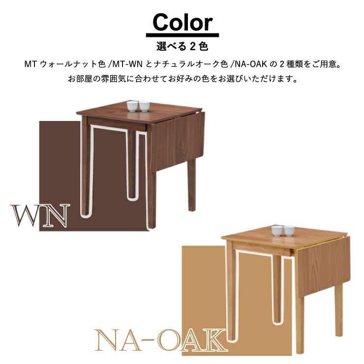 ダイニングテーブル 幅90/60×60cm 選べるカラー バタフライ 片バタ 伸縮式 伸張 mt90bata-360 MTウォールナット色/MT-WN ナチュラルオーク色/NA-OAK 1人用 2人用 机 コンパクト スリム 北欧 食卓 おしゃれ モダン かわいい シンプル カフェ 木製 単品 2s-1k-180 hg