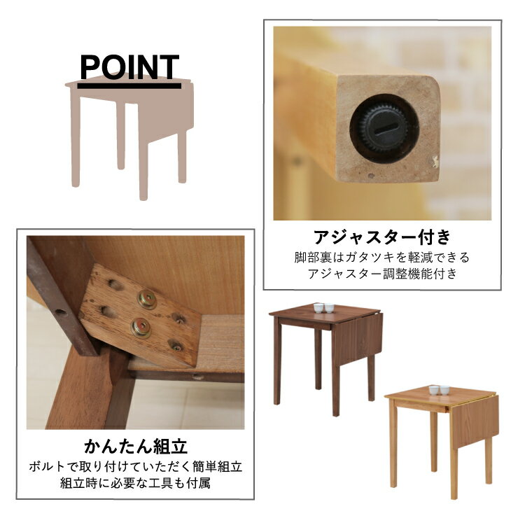 仕 様 サイズ材質 【輸入品】【お客様組立品】 ダイニングテーブル 幅900/600mm×奥行き600mm×高さ700mm 材質 MTウォールナット色:ウォールナット突板/MDF/ラバーウッド ナチュラルオーク色:オーク突板/MDF/ラバーウッド ラッカー塗装 特徴 新品の通常在庫品ですが、特別価格のため【アウトレット品】扱でおねがいいたします。