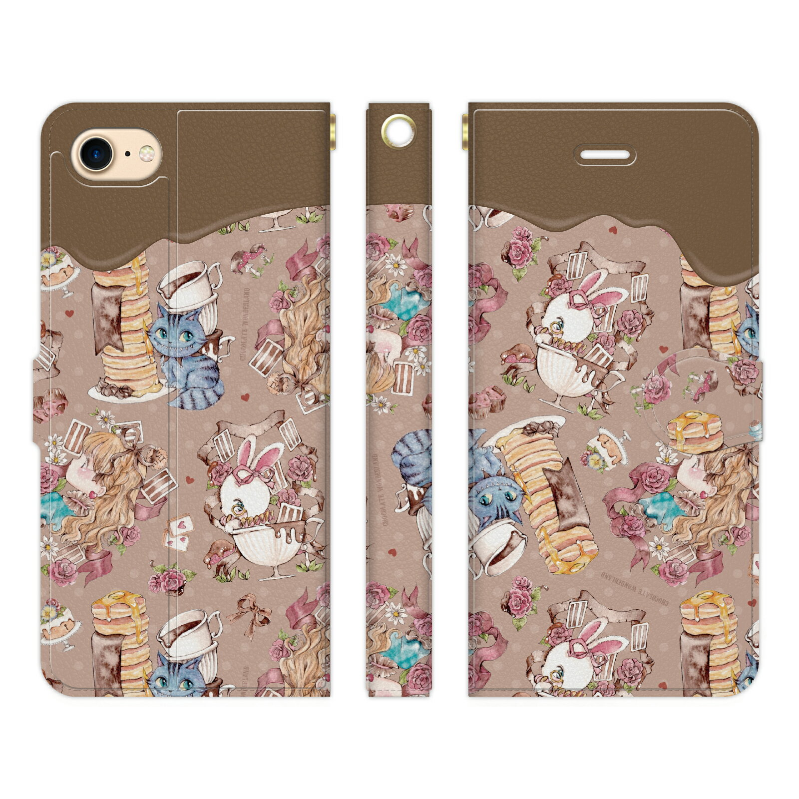 iPhone SE 第3世代 第2世代 iPhone8 iPhone7 6 6s 兼用 手帳型 ケース カバー 不思議なチョコレート国のアリス cinnamon 不思議の国のアリス チョコレート スイーツ チェシャ猫 時計 ウサギ お菓子 折りたたみ カード入れ ポケット iPhoneSE3 iPhoneSE2 SE3 SE2 2022 2020 8