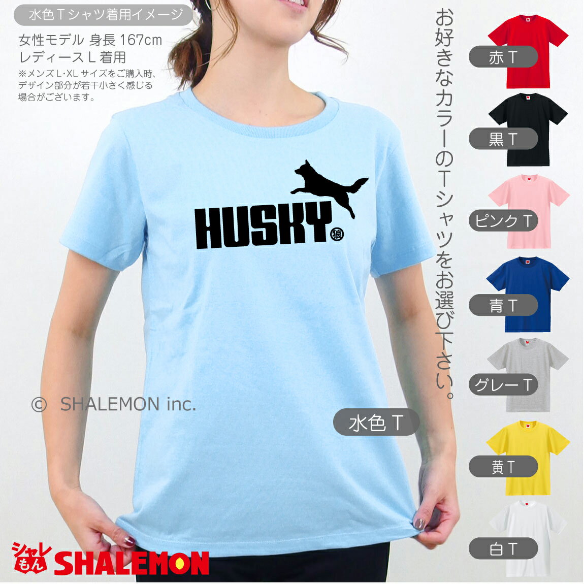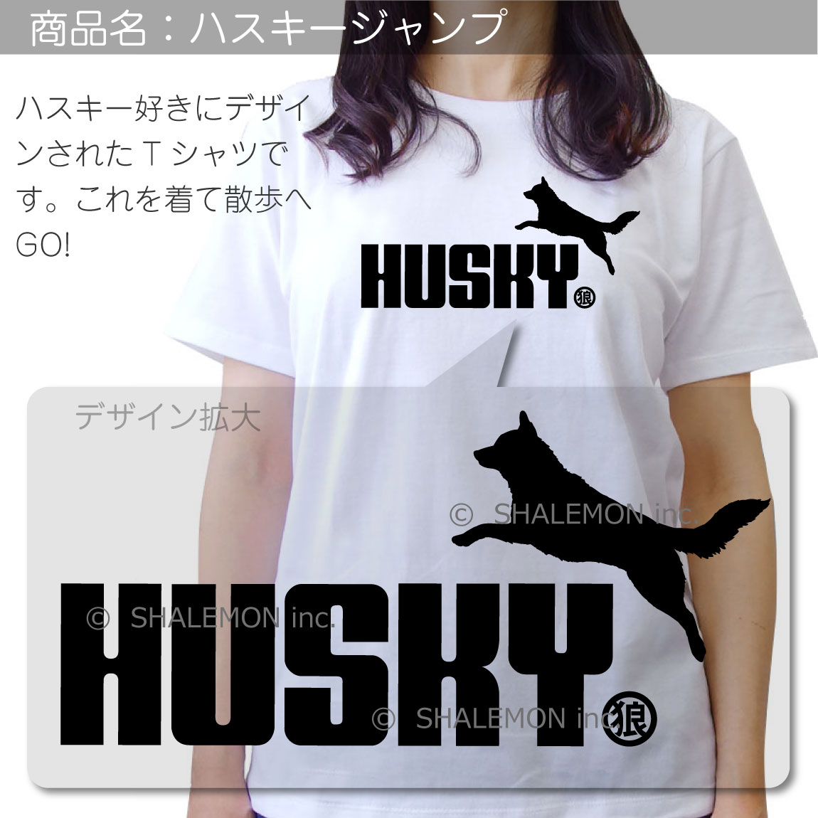 ハスキー アニマル おもしろtシャツ 【 選べる8色 Tシャツ ハスキー犬 ジャンプ 】 Tシャツ メンズ レディース キッズ ぬいぐるみ グッズ 犬ぞり 狼 番犬 遠吠え シベリアン アラスカン カナディアン しゃれもん