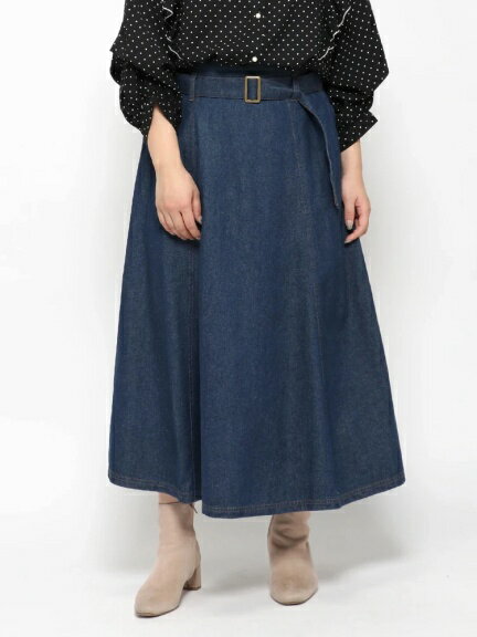 スカート 単品 デニムスカート カジュアルスカート カジュアル 普段着 おうちファッション お出かけ デート 旅行 大きいサイズ ★ 大人カジュアルスタイル!ベルト付きプリーツ入りロングデニムスカート S M L 2L 3L 4L 5L 6L 7L サイズ ★ フリーダム セール sale
