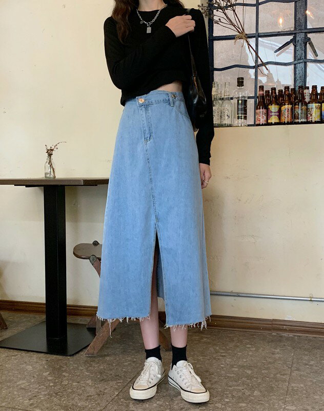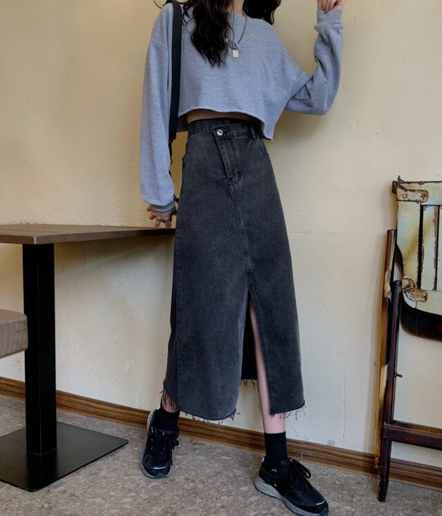 デニムスカート ロング レディース ボトムス スカート ロング デニム ロングスカート ハイウエスト スリット Aラインスカート 大きいサイズ 黒 春 夏 秋 冬 カットオフデニム カットオフ カジュアル セクシー