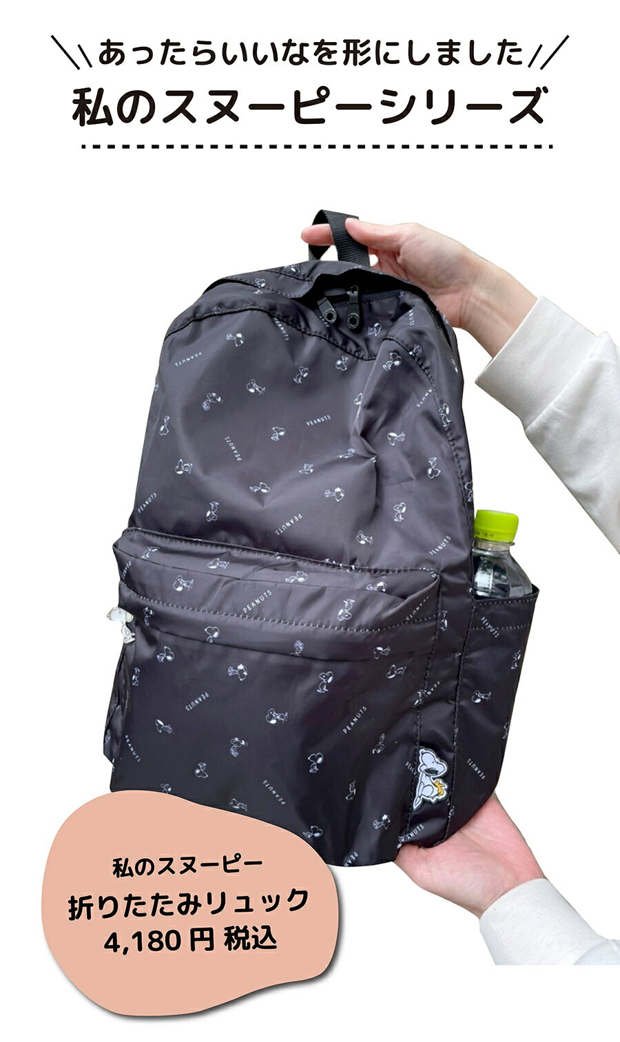 スヌーピー 折り畳みリュック リュック スヌーピー 折り畳み ブラック 黒 おりたたみ ボトルホルダー シフレ サブバッグ バックパック 軽量