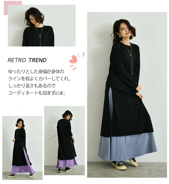 ロングシャツ+スカート 2点セット フレア ロングワンピース レディース 無地 体型カバー 長袖 ロング丈 ミモレ丈 大きいサイズ ゆったり 着痩せ 春 夏 秋 冬 着痩せ スリット 20代 30代 40代 50代 通勤 OL お洒落 可愛い 大人 送料無料