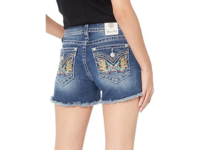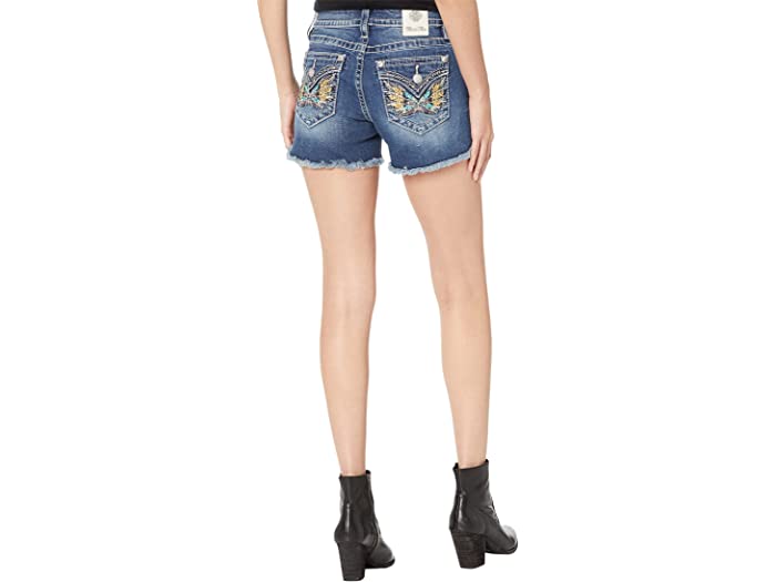 (取寄) ミス ミー レディース フェザー ウイング ミッドライズ ショーツ イン ミディアム ブルー Miss Me women Feather Wing Mid-Rise Shorts in Medium Blue Medium Blue