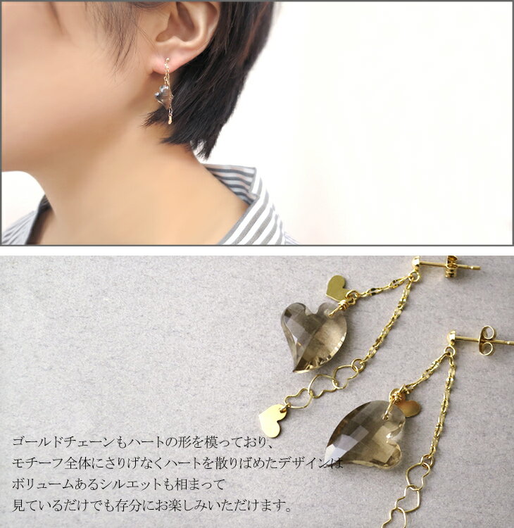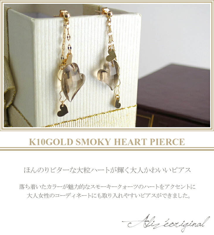 スモーキークォーツ ハート チェーンピアス 2P K10 ゴールド 天然石 ピアス 揺れる ゴールドピアス 10金 10k k10 イエロー ゴールド 天然石ピアス レディース レディースピアス 女性 プレゼント 誕生日 記念日 ギフトBOX ジュエリー クォーツ オリジナル