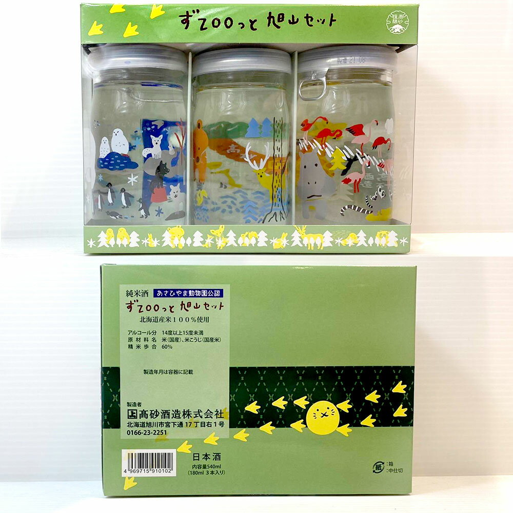 新)ギフト 高砂酒造 ずzooっと旭山セット 日本酒 純米酒 カップ酒 飲み比べ180ml×3本入り ラッピング対応可|敬老の日 ギフト グルメ お酒 プレゼント かわいい 男性 女性 誕生日 お祝い お礼 挨拶