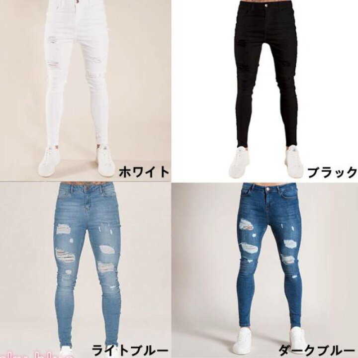 ダメージジーンズ メンズ スキニーパンツ 大きいサイズ 2021 ダメージ加工 スキニーデニム アンクルパンツ カットデニム Gパン ボトムス ジーンズ ジーパン