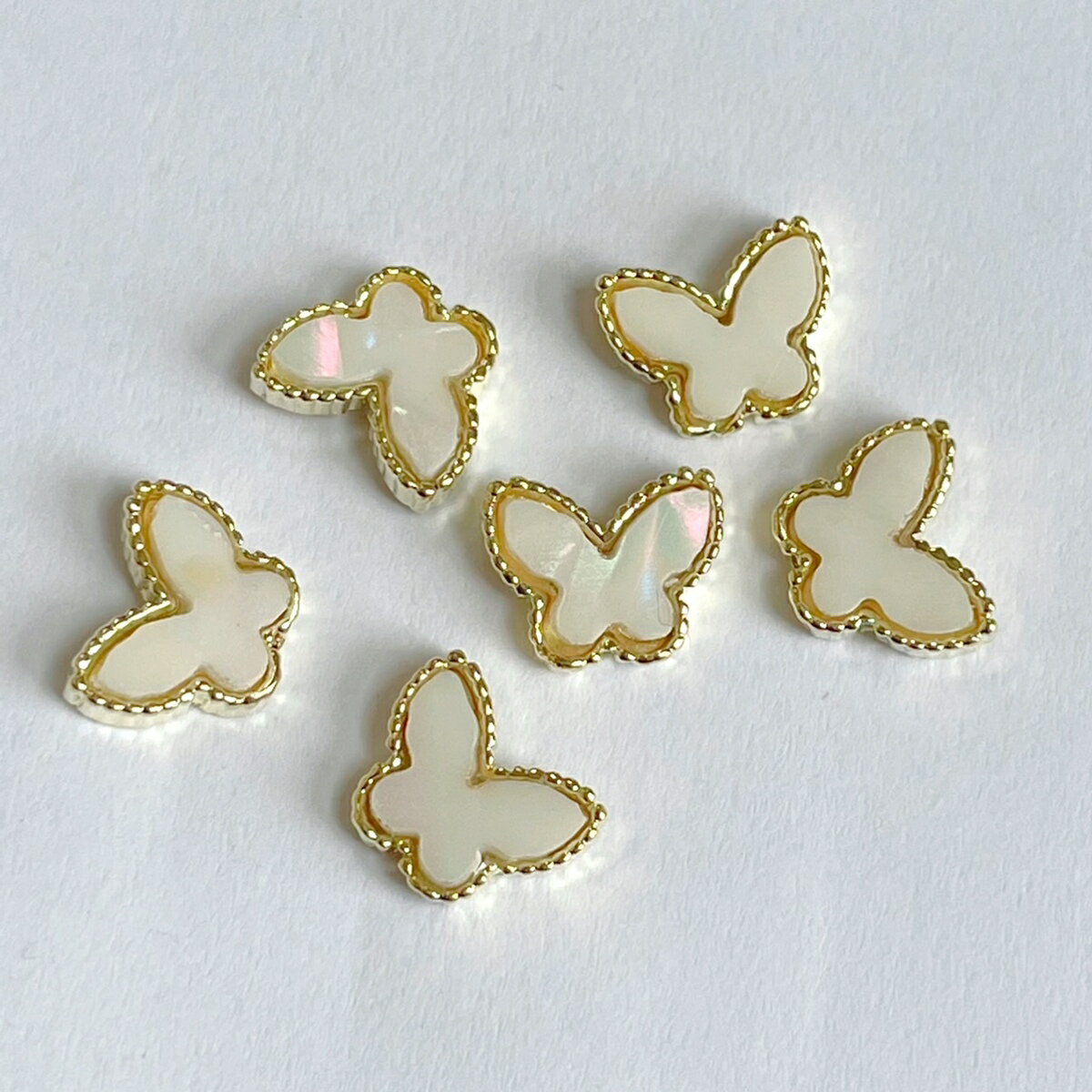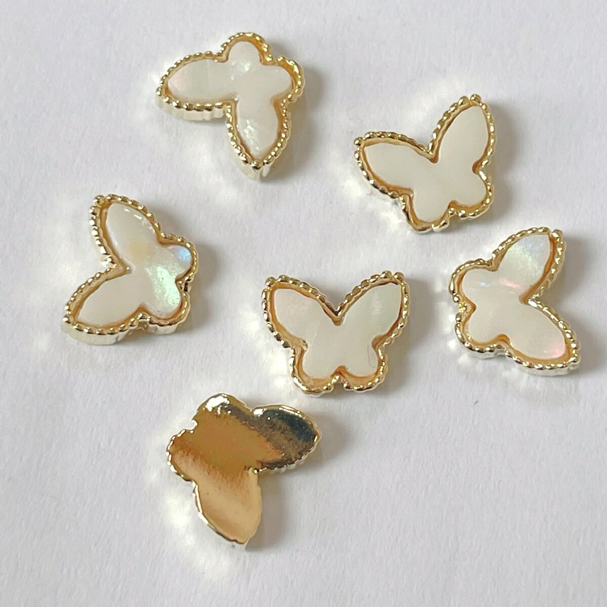 ネイルパーツ【1個】ホワイトシェル バタフライ 小 蝶々 メタルパーツ オーロラ Butterfly ハンドメイド ピアス マスクチャーム デコパーツ レジン材料 ゴールド 個性派ネイル ネイルアクセント SABOE