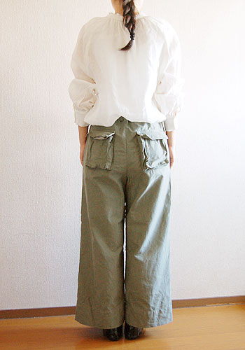 ■難所 フラップ付きマチポケットと 片玉縁ポケット ◆参考用尺(1人分) ・表地(112cm巾以上の場合)=約220cm ・別布(112cm巾の場合)=約45cm ・平ゴム Mサイズ=136cm、Lサイズ=142cm ※フラップ付きマチポケットの場合のみ ・18mm巾ボタン=4個 ◆Size(cm) サイズWH前股上後股上ワイド股下テーパード股下ワタリ巾ワイド裾巾テーパード裾巾 M 66(91) 112 27 30 62 68 35 29.5 25 L 69(95) 116 28 31 63 69 35.5 30・5 26 ※着用モデルは身長160cm、体重50キロで Mサイズを着用しています。