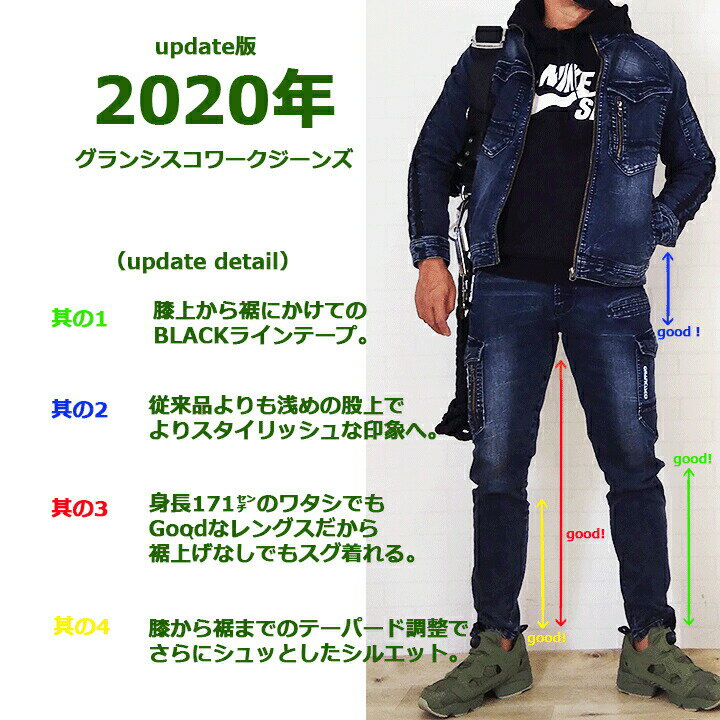 【即日発送】 グランシスコ 作業服 デニム ストレッチ スキニーカーゴパンツ GC-A812【アップデート版】ストレッチ 作業服 オールシーズン タカヤ商事 A800シリーズ