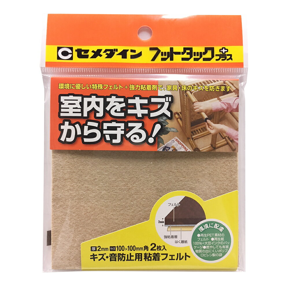 床・フローリングの保護・キズ防止に! フローリングフェルト 家具・椅子用フェルト 2mm厚 貼り付けタイプ フリーカットタイプ 7×14cm 2枚入 彩巧