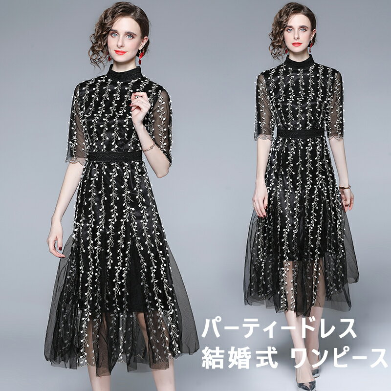パーティードレス 結婚式 ワンピース ハイネック 30代 40代 50代 チュール ワンピース パーティドレス ウェディングドレス 二次会 花嫁 ブライズメイド ミモレ丈 ワンピース 結婚式 入学式 演奏会用 お呼ばれ ワンピース 大きいサイズあり 短納期 送料無料
