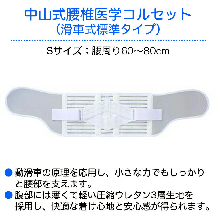 中山式腰椎医学コルセット(滑車式標準タイプ) 規格:S 適用範囲(腰周り):60〜80cm 腰部サポーター 腰痛ベルト 腰用サポーター 腰部固定帯