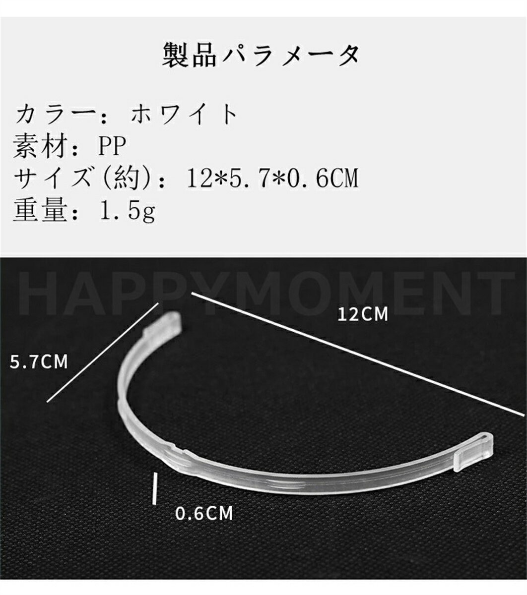 ▼関連キーワードマスクフレーム 10本入り マスク骨 マスクガード 化粧メイク崩れ防止 蒸れ防止 使い捨てマスク マスクの骨 繰り返し使える 超軽量 防滑 マスク補助グッズ 夏対策10本入りマスクフレーム マスク骨 マスクガード 化粧メイク崩れ防止 蒸れ防止 使い捨てマスク マスクの骨 繰り返し使える 【10本入り】超軽量 防滑 マスク補助グッズ 夏対策 ●本製品を175mmの使い捨てマスクに装着すれば、立体的な呼吸空間を作り出せます。