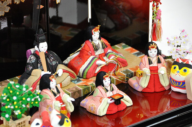 雛人形の前に1対の御伽犬(おとぎいぬ:犬張り子)を飾る風習は日本全国に多く見られます。