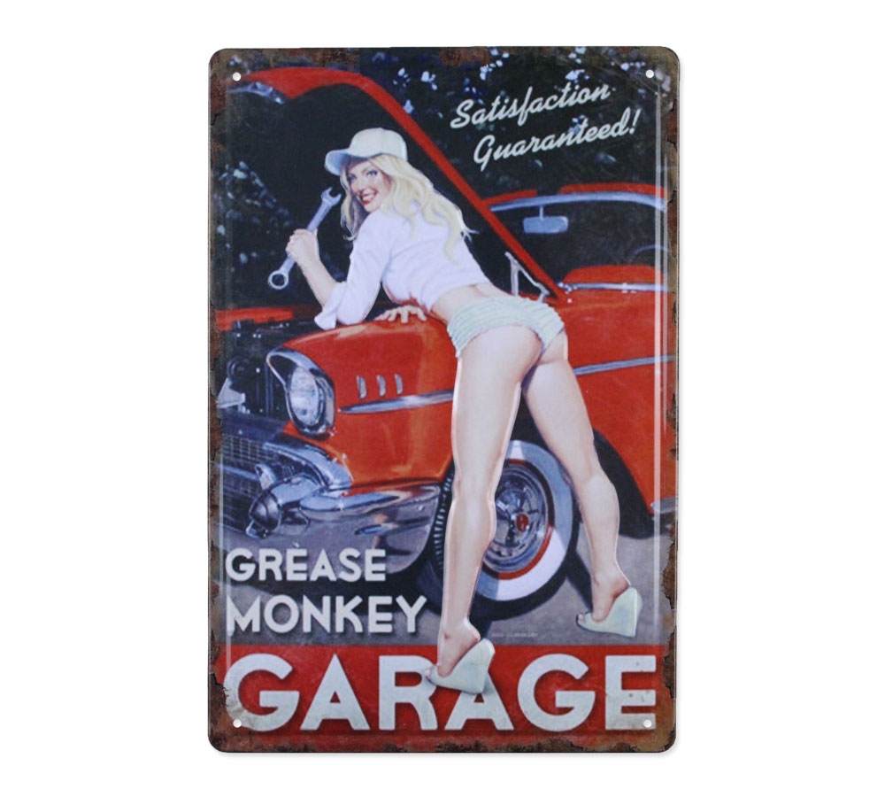 看板 サインプレート サインボード インテリア 雑貨 壁 飾り アメリカン おしゃれ レトロ かっこいい ガレージ アメリカン雑貨 セクシー アメ車 ピンナップガール アンティークメタルプレートS GREASE MONKEY GARAGE 【メール便OK】_SP-Z016779-FEE