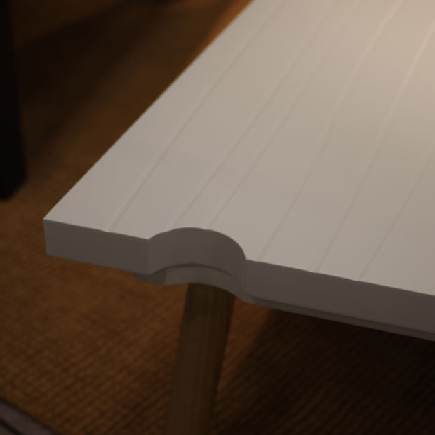 サイズ 幅 120 , 奥行 80 , 高さ 38.5 cm 素材 ポリ板 MDF削り出し ミゾ彫り ホワイト硬質エナメル塗装 アッシュナチュラル脚 メモ 本体 : 日本製(香川県高松市) 600W薄型ファンヒーター(手元コントローラー付) 天板固定可能 脚脱着可能 エコ仕様 F☆