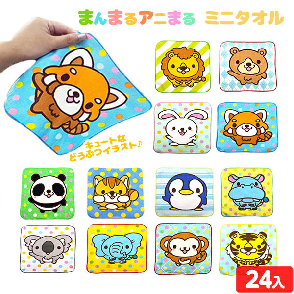 まんまるアニまる ミニタオル 24入 { 景品玩具 アニマル まんまる どうぶつ 動物 タオル キッズ 子供 こども 保育園 幼稚園 }{ イベント ガチャガチャ 景品 }[22G06]