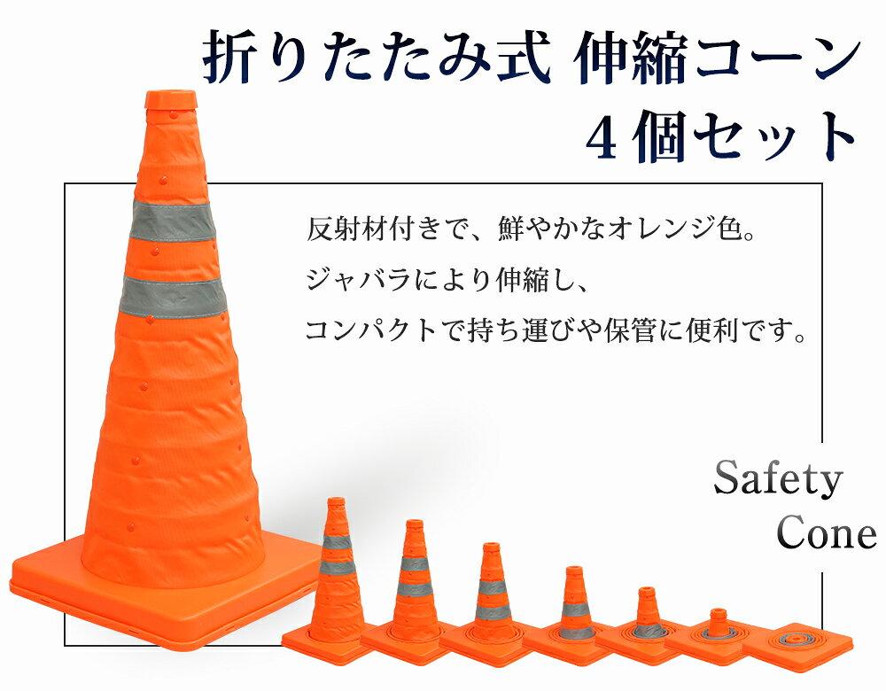 折りたたみ式 伸縮コーン 50cm 4個セット 三角コーン 反射布付き 持ち運び 目印 軽量 駐車 伸縮式