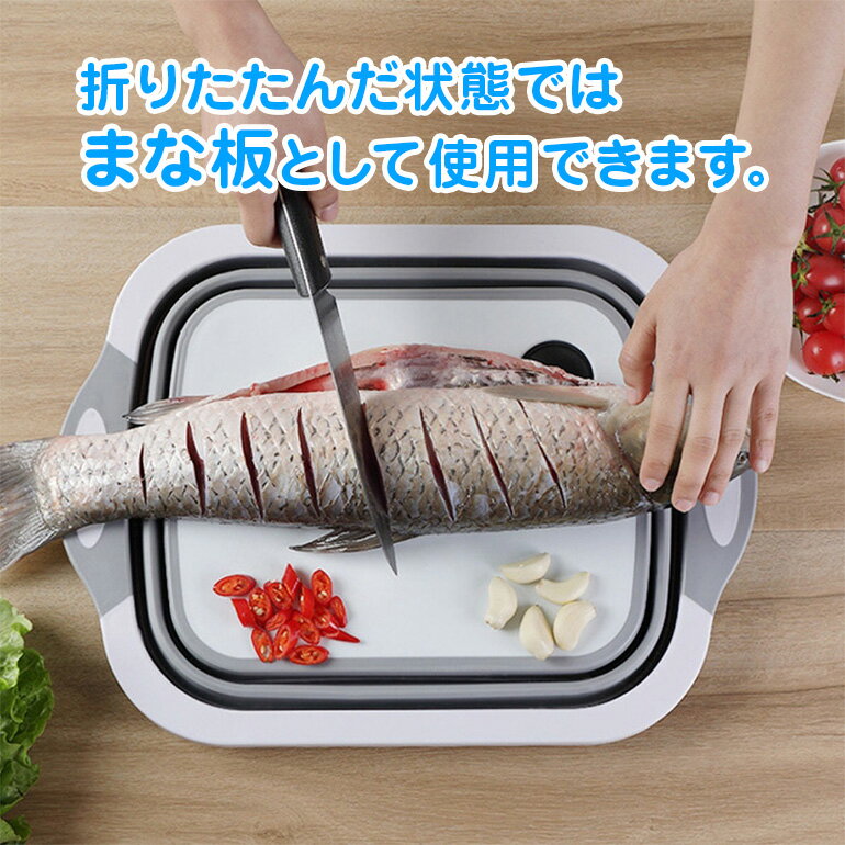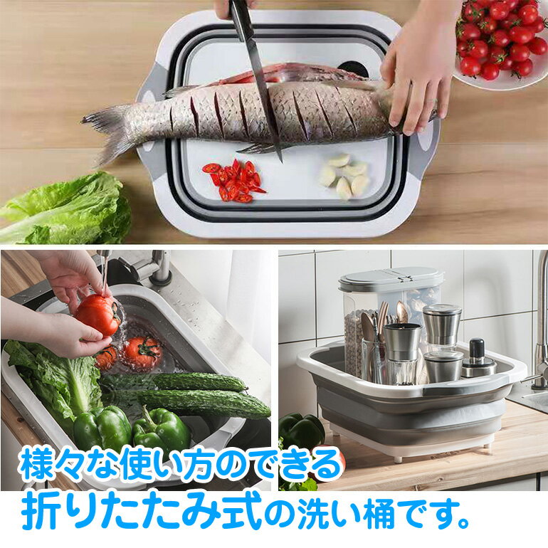 折りたたみ式シンク まな板 カッティングボード バケツ ポータブル 洗面台 キッチン用品 トラベル用品 キャンプ用品 多機能 グレー 送料無料
